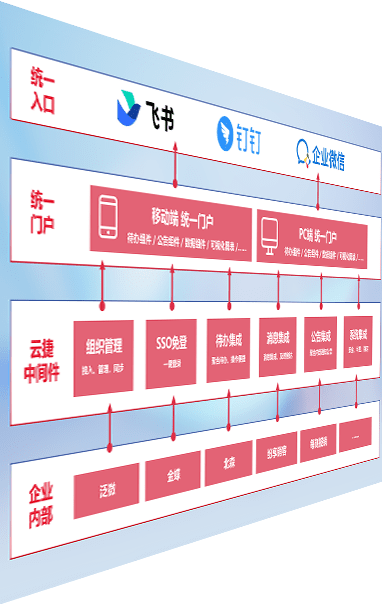 对协作平台提供支持服务,,支持企业应用与协作平台对接,,,包含组织同步、、、、消息集成、、、待办集成等。。。支持目前主流的协作平台:钉钉、、、企微和飞书。。